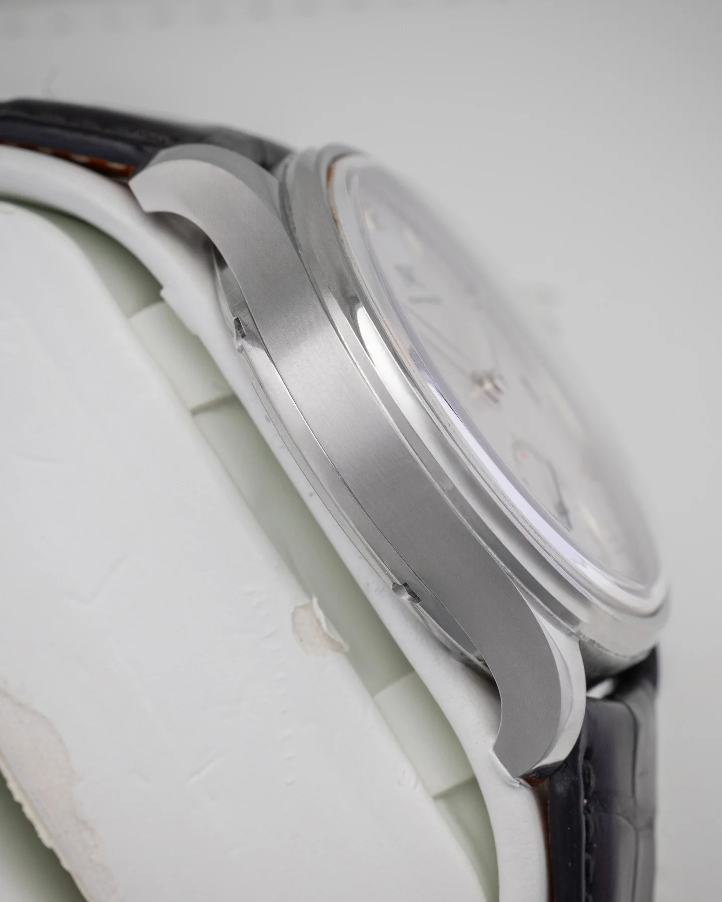 Rooted in IWC’s Portuguese heritage, this 43mm dress watch blends heritage and precision. A cream dial, applied silver Arabic numerals and a precise railroad minute track give it that clean finish, while the blued-steel hand on the small seconds sub-dial adds a subtle pop of color. Powered by the caliber 59215 manual wind movement, it can run for 8 days straight. Wrapped in a stainless steel case and secured with a black leather strap, this piece is bold and effortlessly refined.