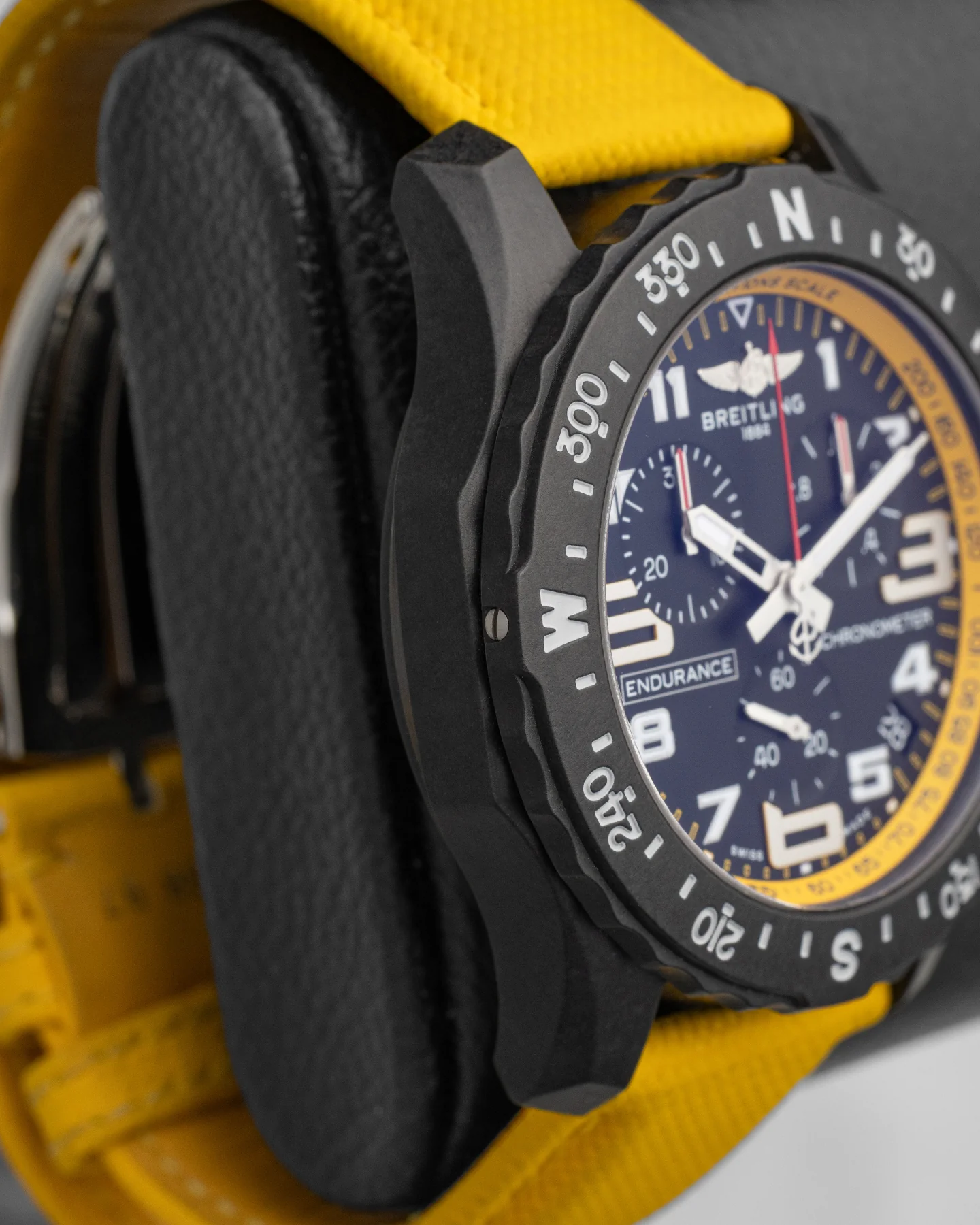 The Endurance Pro X82310 approaches performance from a lighter, faster angle. Its 44mm Breitlight case feels almost effortless on the wrist while still offering the durability expected from Breitling. The SuperQuartz chronograph brings race-ready precision, supported by a clear dial layout that stays legible in motion. Subtle technical details like the compass-style bezel reinforce its athletic intent. This sport watch reflects how Breitling watches continue to evolve for an active, contemporary lifestyle.