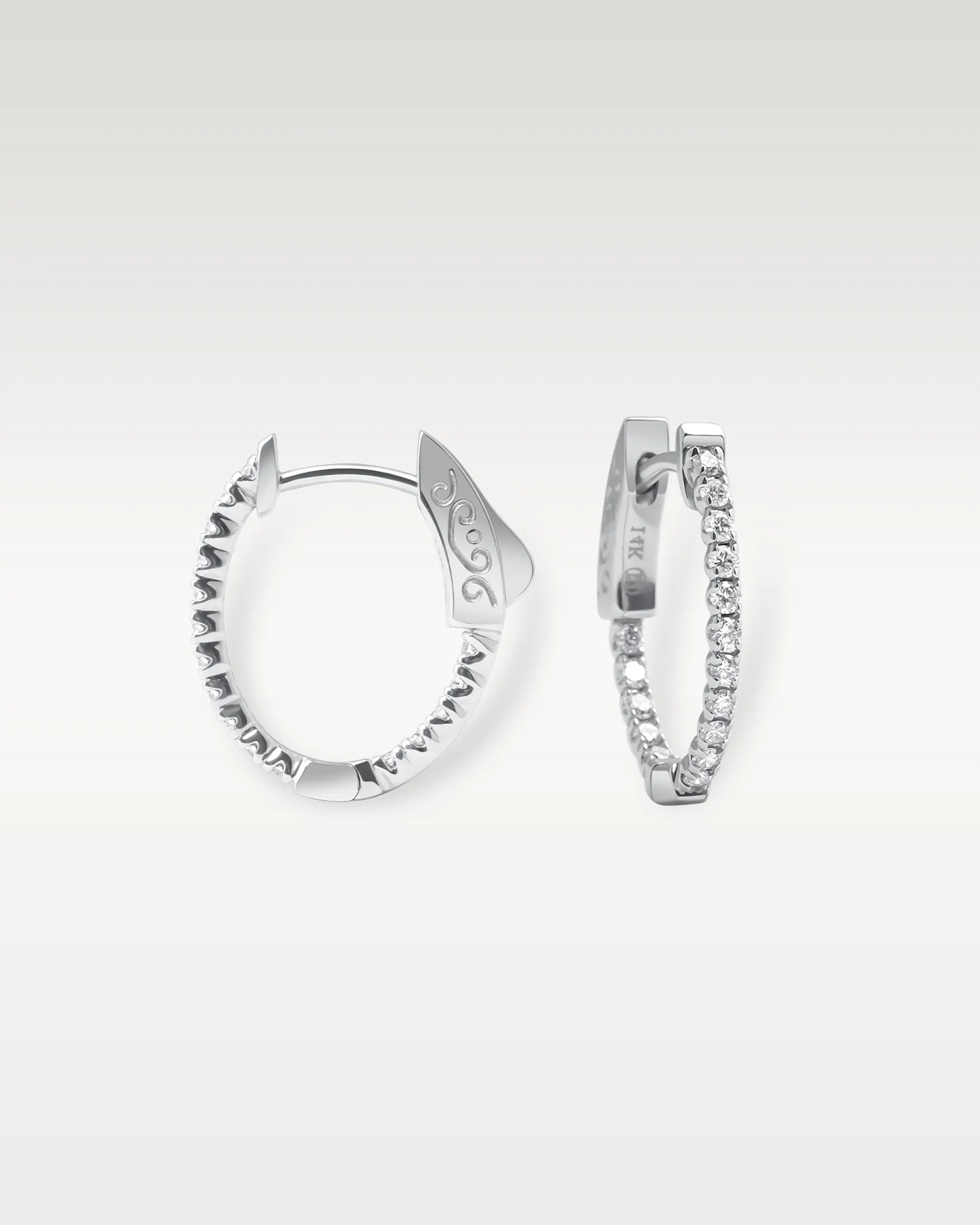 A little luxury for every occasion. These 14k white gold hoops, set with shimmering diamonds, elevate everything from casual coffee runs to late-night city lights. Layer them with a tennis bracelet or mix them with other gold ear cuffs for a perfectly curated ear stack.