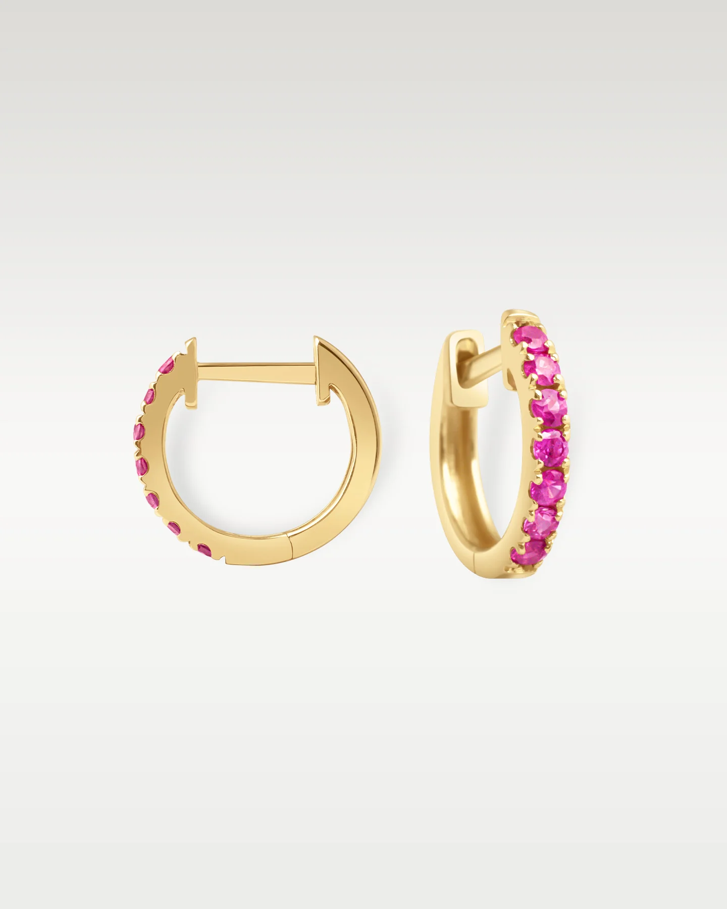 Yellow Gold Ruby Huggie Hoops